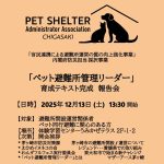 2025年12月10日 / 最終更新日 : 2025年12月10日 kk09066506141@gmail.com 防災イベント 12月13日(土)に「ペット避難所管理リーダー」 育成テキスト完成報告会を行います