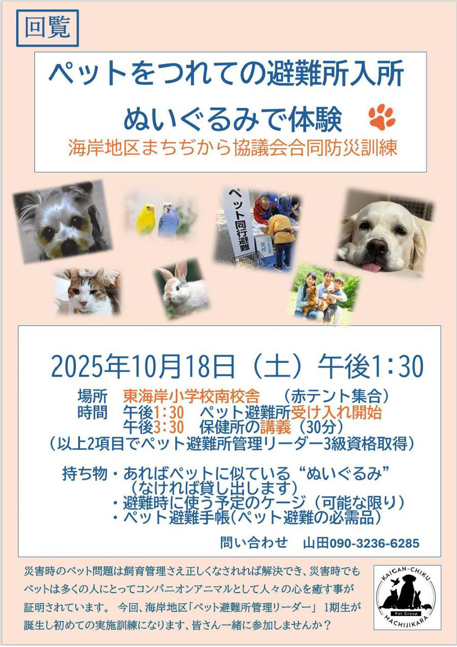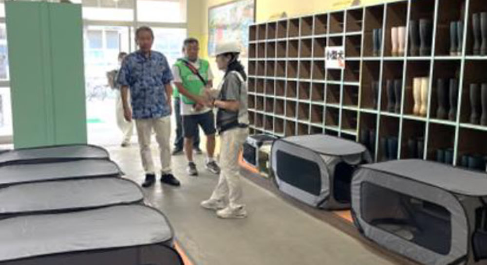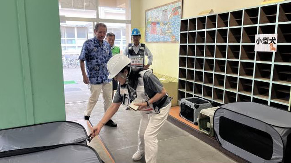 避難所のペット問題はどこも同じ、防災対策課/保健所と連携し市民目線をいかして「ペット避難所管理リーダー」育成テキストを作成、会議室でも学びながら実施訓練までできる「ぬいぐるみ3ステップワーク」を市長へ解説、大好評でした