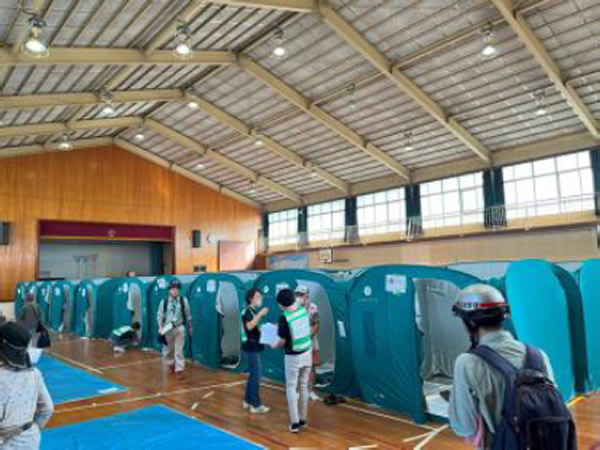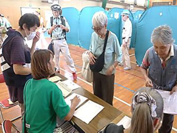 地域の防災訓練で避難所開設・運営訓練で避難所の入所体験