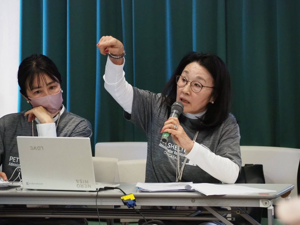 「私たちはこれまで内閣府がこれまで推奨していたペット避難所のあり方とは少し異なる視点からの発想で、マザーアース茅ヶ崎独自の『ペット避難所管理リーダー』育成テキスト を作成しました。現在のガイドラインでは、被災直後からペットの管理をするのは飼い主となっていますが、ペット同行避難者も被災者の1人です。やっとの思いでたどり着いた避難所で不安を抱きながら自分たちでの管理は不可能だと考えています。訓練されたペット避難所管理リーダーを育成し、人もペットも明確な基準のもと、せめて発災直後の避難所への入所が安心できるものでありたいと私は考えています」