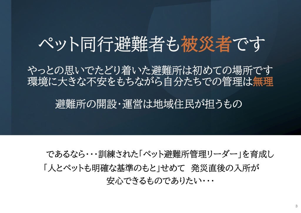 「人もペットも明確な基準のもと、避難所入所が安心できるものでありたい」